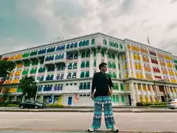 Photo corner of the rainbow-colored window building, Old Singapore Police Station
