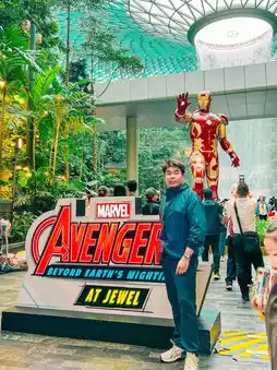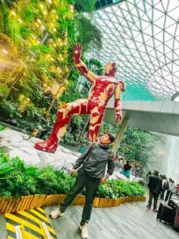 Jewel Changi Airport Terminal 1 is a must-visit. Designed by Safdie Architects, the same firm that designed the Marina Bay Sands ship-shaped building, the mall features a tropical green forest-like structure in a large elevated structure. The central courtyard is part of the Shiseido Forest Valley, consisting of a central waterfall channel surrounded by four-tiered tree terraces called the HSBC Rain Vortex. This time, Iron Man is standing out prominently. The building is open 24 hours a day, but most shops are open from 10:00 a.m. to 10:00 p.m.