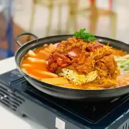 We ordered cheesy army stew set, come with pancake, drinks and free-flow of banchan.😋👍🏻✨We enjoyed their banchan served so much, taste great - all fresh, crunchy and appetising. And the cheesy army stew is substantial for 3 of us, superb delicious and full with ingredients in the pot.