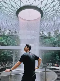 -The Jewel Changi Airport เราจะเห็นว่าจะมีรูปน้ำตกยักษ์อยู่กลางสนามบินใช่แล้วครับมันคือน้ำตกยักษ์ที่ทำด้วยฝีมือของมนุษย์เป็นรูปทรงโดนัทใช้ความสูงประมาณตึก 10 ชั้นหากใครลงสนามแล้วอย่าลืมพลาดชมน้ำตกยักษ์ที่ยิ่งใหญ่และเป็นแลนด์มาร์กสิ่งแรกที่มาถึงประเทศสิงคโปร์