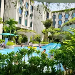 It was amazing...!!! There were the kids pool with slide and all, mini lazy pool and adult pool with jacuzzi... As the morning got hotter, we washed up, got breakfast and prepare to check out.