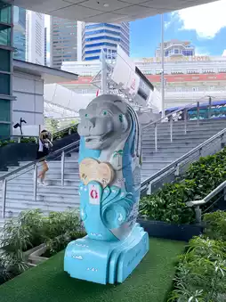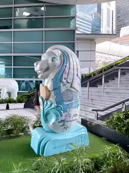 Today, we will take everyone to see the view at Merlion Park, a public park by Marina Bay, where the giant Merlion sprays water, an important landmark of Singapore.