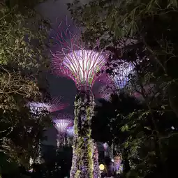 Garden by the Bay is a famous attraction in Singapore, must go 💖💖 The sky tree is really super big 😨😨😨 There are fifty meters, very spectacular, the sky tree at night with the lights is still beautiful, like going to a fantastic world, and there is also a music show 🎶🎶 music show is free, very worth going 🤣