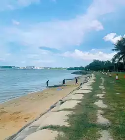 ⑦The sunset is really beautiful, it's recommended to come around five o'clock, sit by the beach when tired, chat, and enjoy the scenery, it's very nice. Opposite is Pulau Ubin, and you can also see airplanes landing.