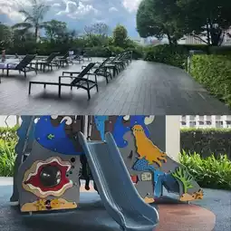 There is an outdoor swimming pool, beach chairs, children's playground, restaurant, gym, laundry room... good facilities 👍👍👍👍