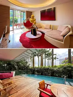 W Singapore - Sentosa Cove Located in the most prestigious Sentosa Cove area on Sentosa Island, Singapore, the hotel's design incorporates the island's unique natural elements with the modern style of W Hotels worldwide~ Every corner of the hotel is full of surprises~ Orchids, rosewood, and traditional floral textiles are the inspirations for the designers, and many of the hotel's decorative materials and patterns come from Sentosa Cove. Gorgeous, stylish, surprising, romantic... all these dazzling elements are integrated, satisfying everyone's visual fantasies~ The outdoor terrace with lighting fixtures, the rock-shaped convertible benches, and the large-scale rock garden, W, the global modern luxury fashion lifestyle brand, has also successfully turned Sentosa Island's natural scenery into its own signature here. I stayed in the only one-of-a-kind Fabulous Overwater Villa suite in the entire hotel~ The room is on the first floor, with a fairly large private pool, and the living room, bedroom, and bathroom are all dominated by red~ The suite's bedroom with the bed positioned in the center is very comfortable, and the privacy and vacation feel are also very good!