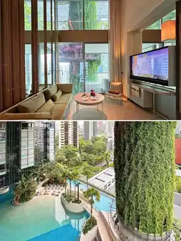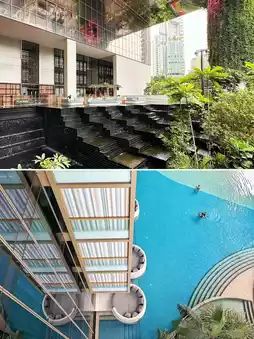 Pan Pacific Orchard, Singapore The newly opened Pan Pacific Orchard, Singapore on Orchard Road last year is definitely worth a visit! The overall design concept of the hotel is stunning, with four different themed interiors—forest, beach, garden, and cloud, creating the hotel's unique platform spaces! I stayed in a Beach Terrace Suite, which belongs to the 'Beach' theme on floors 5-10, so the view was of the pool landscape. At night, the open terrace with its mirrored ceiling reflects the starry sky above the garden pool, which is insanely beautiful! The room amenities are also great, with a full set of Diptyque bath products and lotions~ The four different themes of the hotel's spatial design are all fantastic! The 'Forest' on floors 1-4 is the restaurant and lobby bar~ The breakfast environment is also very nice, and everywhere you go is photogenic!