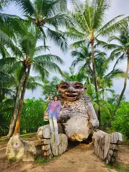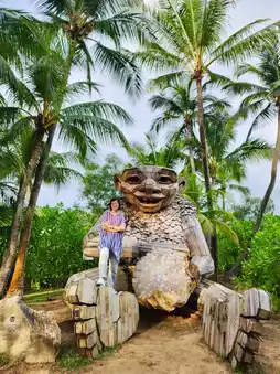 We encountered some difficulty spotting the 3rd & 4th giant trolls as they were concealed in slightly forested areas. Neither the island staff knew where they were, nor were there any signs indicating their locations. To hinder us further, it started pouring heavily 🌧️ just as we were triumphantly striding across the sandy beach to the final giant troll 😅