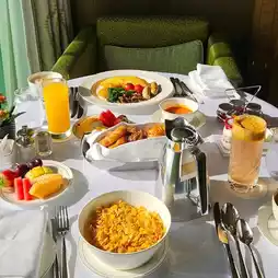 The breakfast buffet features a wide range of dishes, including: