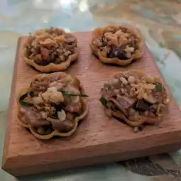 Another dish that surprised me was the Curry Chicken Kueh Pie Tee. It's an innovative take on a classic, and I expected the curry chicken to soften the shell, but it didn't. The crispiness of the shell paired perfectly with the tender, spicy curry chicken. Putting the whole thing in my mouth resulted in an explosion of flavours that were out of this world!