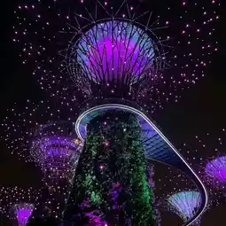 The park of Singapore's Gardens by the Bay is super large. It is recommended to arrive in the afternoon to play the Conservatory Flower Dome and Cloud Forest first. After coming out, cross the Supertree Grove and queue up to climb up to the Supertree Observation Deck to enjoy the daytime view of Marina Bay. After coming down, have something to eat and reserve a seat, waiting for the Supertree light show at 19:45 or 20:45 in the evening, and finally queue up to climb up the Supertree Skywalk (OCBC Skyway) to shuttle between the towering Supertrees. It is super beautiful and highly recommended! If you have enough energy, there is a free water dance show at the Sands Water Curtain Plaza at 22:00 on Friday and Saturday nights. You can go and watch it.