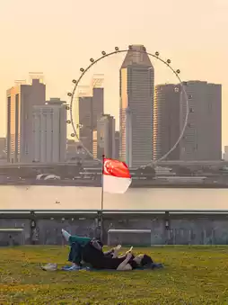 #Flying with trip, a chilling spot for Singaporeans, Marina Barrage, the evening atmosphere is very good. I must say that you will definitely get beautiful photos with a magnificent backdrop to take home. For this check-in point, it will be a reservoir connected to the sea. You can walk to see the view, sit and relax, or take pictures. The highlight of this reservoir is that you will get a full view of the peak. Whether it is the view of Marina Bay Sands or Gardens by the Bay, you can see everything. Especially in the evening, the light is very beautiful. 🌆
