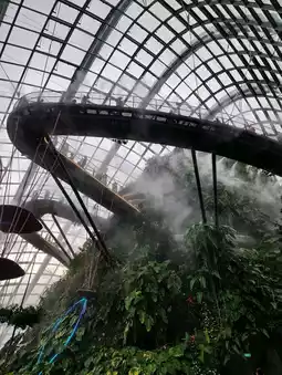 Gardens by the Bay is a stunning garden in Singapore that showcases modern horticultural art. The iconic Supertree Grove features giant tree-like structures, and at night, the Supertree Show combines dazzling lights and music. To get the best spot for the Supertree Show, it's recommended to arrive an hour before the show starts!