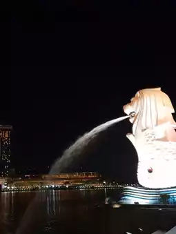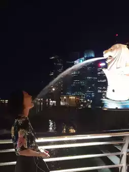 If you are traveling to Singapore, make sure to take unique photos at Merlion Park and enjoy the beautiful night view.
