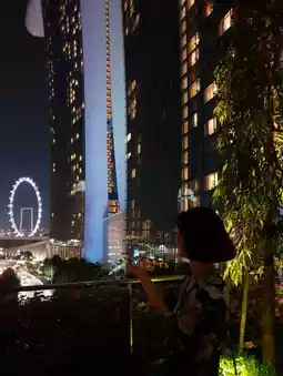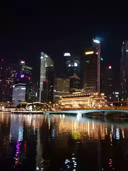 At night, the Marina Bay Sands Hotel looks even more splendid and mysterious thanks to the lights reflecting on the water.