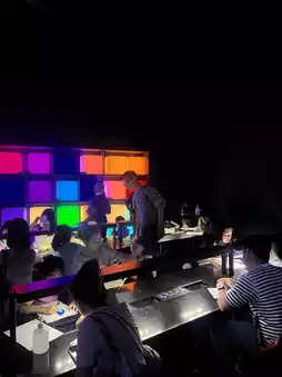 🧬🔭 Inside, there are many activities to do. There is a new form of light and sound show using technology + art. It is interesting. Gammy got to draw and color. Then, the staff will scan our work and the picture will appear on the screen. It is very cool, fun and enjoyable.