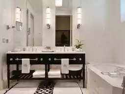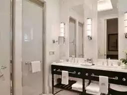 The marble-clad bathroom is equally noteworthy and comes with a tub, a separate rainshower and loads of space in between. There is even a bathtub pillow available to meet your soaking needs. Turndown service leaves a short story excerpt on your pillow every night.