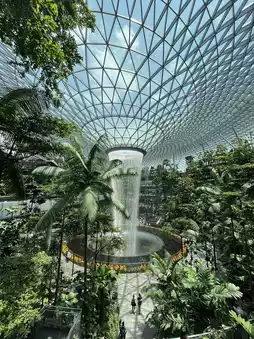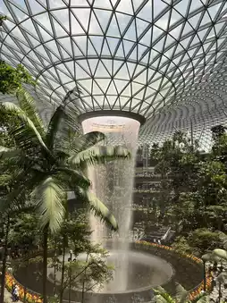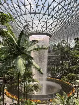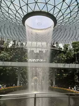 Singapore Changi Airport is often regarded as the best airport in the world, and Jewel Changi, located in Terminal 1, is a must-visit attraction. At its center is the Rain Vortex, the world's tallest indoor waterfall. I arrived at the airport early specifically to see this artificial waterfall, and it was a decision I did not regret. The 40-meter-high water cascade pours down under a glass dome, creating a spectacular view in harmony with the surrounding lush garden. During the day, it is illuminated by natural light, and at night, it creates a magical atmosphere with lighting, making it a perfect spot for photography. Additionally, Jewel Changi features various shopping malls, restaurants, and experiential facilities, transforming the airport into a travel destination rather than just a transit point. I was delighted to find llaollao, which I had tasted in Spain, and it tasted just as good as I remembered. While Incheon Airport in Korea is also excellent, Changi Airport's efficient and comfortable facilities, along with the beauty of Jewel, offer an unforgettable experience to anyone visiting Singapore.