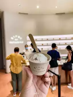 Another shop is a famous gelato shop with a long queue. There are many flavors. It is an ice cream for health lovers. It has many types of ingredients, both herbs, fruits and flowers. The taste is quite delicious. Now that you're here, you have to try it out!