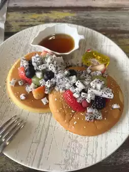 I went with a friend to the brunches after many months. It continues to be fun and decor is a reminder of so many things in childhood. The ambience of the restaurant is warm and inviting. Retro style, the people working here are super friendly. Our brunch had my favourite breakfast set, pancakes and we even decided to take some ice cream.