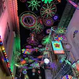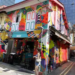 Haji Lane is located in the Kampong Glam area of Singapore. It is known for the colourful murals, trendy boutique shops and vibrant night life.