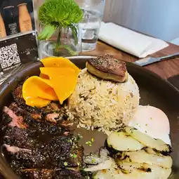 Needless to say, I have managed to impress my date again. So the server poured rum on bombe alaska’s meringue, which was then burning into flames. It was an ice cream on fire, so on point. Bedrock Origin served roasted garlic clove with olive oil and butter as a starter. A must order on their set lunch will be their signature bedrock black pepper steak rice bowl and it also served with foie gras. Best of the best!.