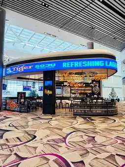 I have not share much about this travel hacks but you can read it from me right now. This is Tiger Den, a beer place and restaurant operating 24 hours at Changi Airport Terminal 4. It is inside the transit area so you will have to have a boarding pass to enter immigration. In Changi airport, it is alright to check in 24 hours before flight and you can come here to shop at the duty free shopping. Tiger Den also sell merchandise and you can collect them because you cannot really find their merchandise outside. They have tshirts and lanyards and many other seasonal collectibles. If you are using Priority Pass then you can use it at Tiger Den for shopping too.