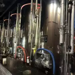 A restaurant with a large brewing facility inside, overlooking Marina Bay Sands!