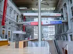 Both buildings are designed with large stone pillars, domes, and intricate decorative details. In addition, the renovation and connection of the two buildings with a modern glass and steel bridge is a fusion of history and modernity, creating an atmosphere of depth and connection to the past.