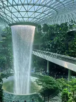 Among them, the 40-meter-high "Rain Vortex" waterfall is the biggest highlight of Jewel Changi Airport and the world's tallest indoor waterfall. The four-storey building surrounding the waterfall is filled with plants from around the world, replacing the Gardens by the Bay as Singapore's largest indoor garden. 🌴