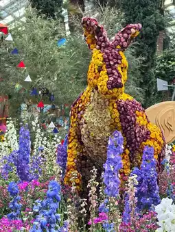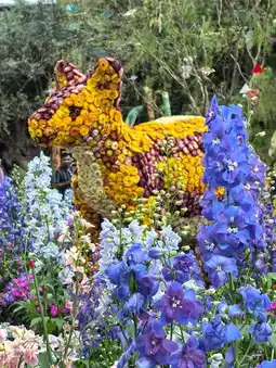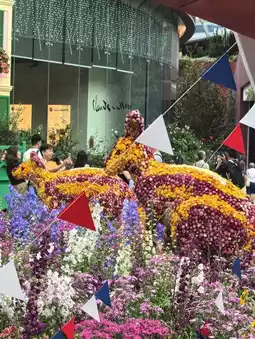 Carnival of Flowers is a showcase of the vibrant array of colorful Australian flowers, including native plants such as manuka and banksia. Visitors can also enjoy a striking exhibit of Aboriginal art shaped like native flowers, as well as wooden sculptures of kangaroos and eucalyptus trees. The display is inspired by the Toowoomba Carnival of Flowers and promises a visually stunning and refreshing experience with its rich colors and beautiful arrangements.