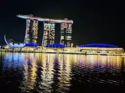 Marina Bay Sands, with its iconic shape, dominates the scene, while the surrounding area buzzes with energy.