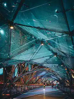 As darkness falls, the Helix Bridge lights up with a sequence of LED illuminations that trace the path of its steel curves. The lights are not only visually stunning but are also designed to highlight the bridge’s intricate design and the symbolic representation of life and continuity. The reflection of these lights on the waters of Marina Bay adds a magical touch to the nighttime stroll.
