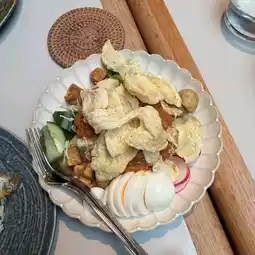 Their fried chicken with Rampung crumbs is excellent ( Ayam Goreng Berempah moist and a bit of roasted crumbs adds a lot of flavor) as is their green beans.Cute arrangement of their plate of appetizers. The only downside was their beef rendang. The flavor of beef rendang was spot on but their meat was very low quality and chunks of fat which you find out only when you bite into it. So for the price they offer beef rendang was not a good deal.