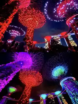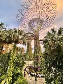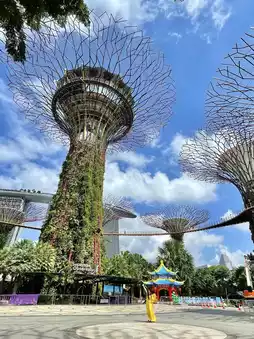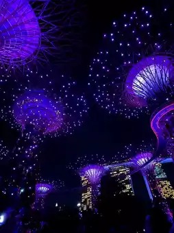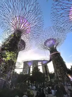 The famous "Supertree Grove" is a huge artificial tree that is 25 to 50 meters tall, and is lit up at night, creating a fantastic view.