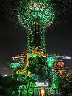 2.Gardens by the Bay; the futuristic park is a must-see, featuring the famous Supertree Grove, Cloud Forest, and Flower Dome. These massive gardens combine cutting-edge technology with beautiful horticulture, especially magical at night when the Supertrees light up in a dazzling display.