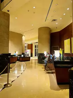 Adorned with tasteful floral arrangements and plush, comfortable seating, the lobby invites guests to linger and enjoy the serene atmosphere. It serves as the heart of the hotel, bustling with the comings and goings of international guests, yet it maintains a sense of tranquility and grandeur that is both impressive and inviting.