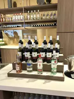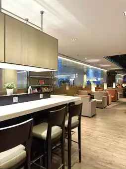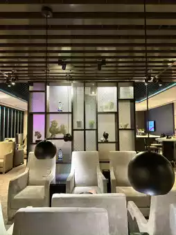 The lounge inside has a calm atmosphere with dim lighting, and it was a long lounge.