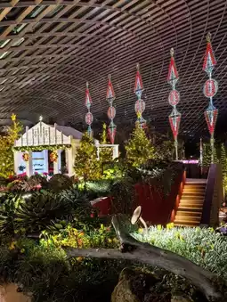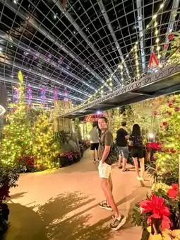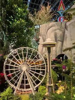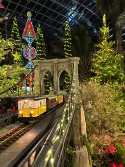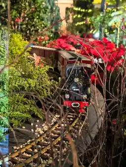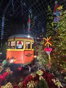 The night view of the Christmas Train at Flower Dome in Gardens by the Bay is particularly enchanting, as the festive lights, decorations, and ambient illumination enhance the magical atmosphere. The interplay of twinkling lights with the lush greenery and the mini trains, creates a mesmerizing scene that's perfect for photos and an unforgettable holiday experience.