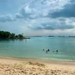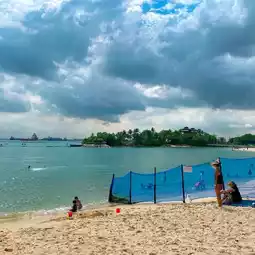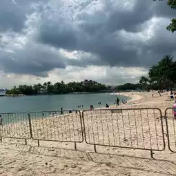 Free entry to sentosa ans parking is Reasonable. Can see from tbe picture the beach is kept clean with clear bkue water. Beqare of otta as it was seem romaing the beach before.