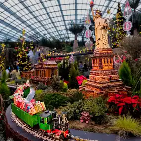 Enjoy the cutest 100-meter-long mini train running through colorful flowers. Explore America from Liberty to the Empire State. Plus, there are retro Swedish buses and Singapore MRT stations. 🚂✨