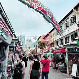 The Michelin-starred chicken rice on the first floor has a daily line-up! The second-floor vintage stamp and coin market is a great place to find great deals, and the third-floor rooftop offers panoramic views of the colorful rooftops.
