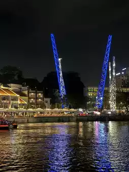 The atmosphere is electric, with the quay’s energy palpable in the air. You can stroll along the waterfront promenade, taking in the sights and sounds of live bands and street performers that add to the lively ambiance. Clarke Quay’s array of dining and entertainment options makes it a perfect spot for an evening out, whether you’re in the mood for a romantic dinner, a night of dancing, or simply enjoying a cocktail with a view.