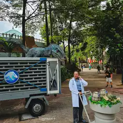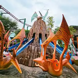 🌴 Canopy Flyer, a thrilling ride like flying over the Jurassic forest from a high viewpoint.