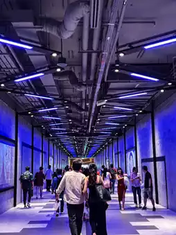 Funan Mall boasts an innovative architectural design that includes a six-story retail complex with a striking façade and a lush rooftop garden. The interior features an open and fluid layout that encourages exploration and interaction. Tech enthusiasts will appreciate the mall’s smart features like automated directory kiosks, a robotic arm for automated parking, and smart fitting rooms that enhance the shopping experience.