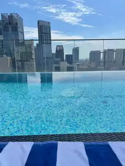 The room I stayed in was clean and tidy, with a very comfortable bed. The toiletries had a magnolia scent that I absolutely loved—it felt especially pleasant to use. The rooftop pool’s night view was unbeatable; swimming there at night felt like being in paradise. The room layout was well thought out, with attention to every detail, making the stay very comfortable.