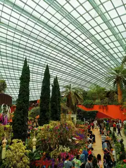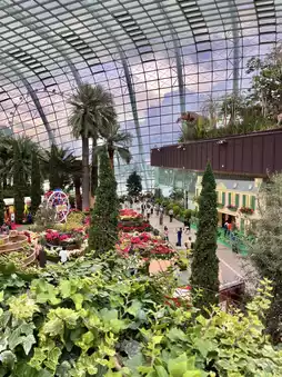 Another must-visit attraction in Singapore. If you love flowers, you definitely have to visit the Flower Dome at Garden by the Bay at least once. This is an indoor flower and tree garden with air conditioning, so you can stroll comfortably in the cool. The interior is very spacious with various garden arrangements. There are many unique and beautiful trees and flowers. Mainly, there are two sections: a permanent garden section and an exhibition section where the garden displays change periodically. When we visited, it was an orchid exhibition featuring many varieties of orchids, all very beautiful. And in 2025, the theme garden will be Disney-themed, which is very special. I highly recommend anyone visiting during this time to check it out. You can buy tickets on the Trip app or at the venue. I suggest buying a combo ticket with Cloud Forest for a better price.