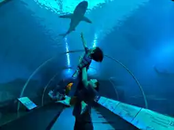 Stepping into the SEA Aquarium feels like entering a gateway to the deep sea, where the world before your eyes is instantly bathed in blue, deep and serene. Inside the aquarium, marine creatures glide leisurely, with light and shadow dancing on the rippling water, creating a dreamlike scene. Walking through the ocean tunnel, surrounded by transparent glass, giant sharks gracefully pass overhead, and stingrays spread their wings beside you, as if you are underwater, dancing with thousands of sea creatures. Every step takes your breath away, immersing you in this mysterious and magnificent ocean world.