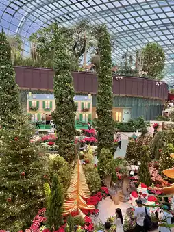 The Flower Dome at Gardens by the Bay is a massive 28-hectare glass greenhouse garden where you can see plants from dry subtropical climates🌺