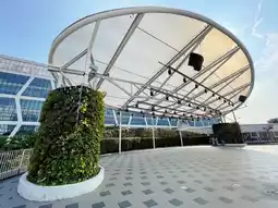 On one end, there is a mini amphitheater where yoga and dance exercise classes are conducted regularly. On the other end is a wooden platform that looks perfect for a picnic.